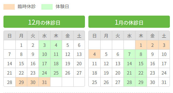 12月・1月休診日のご案内