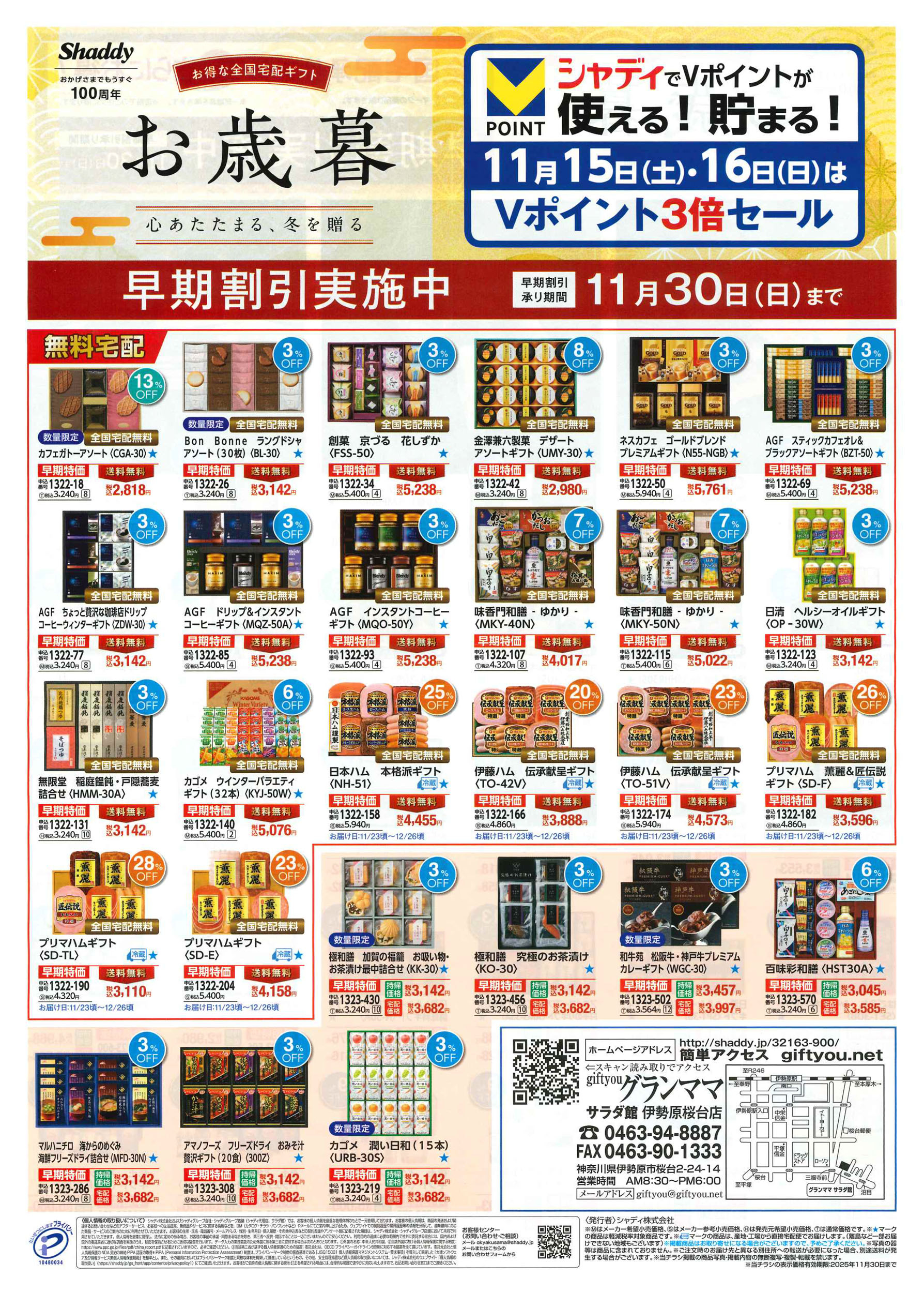 伊勢原市 グランママサラダ館 シャディサラダ館 伊勢原桜台店 お中元 歳暮 カタログギフト ピックアップニュース ネットチラシ 料金・サービス ネットチラシ 広告有効期限:2025.11.14~2025.11.16 その他のネットチラシ 周辺のチラシを見る 周辺情報 グルメ ショッピング 車・バイク 住宅 暮らし 趣味・レジャー 美容・健康 SpirituS(スピリタス) 14.77 km ルートを確認する このお店のTOPページへ 0463-94-8887 twitter Facebook Google+