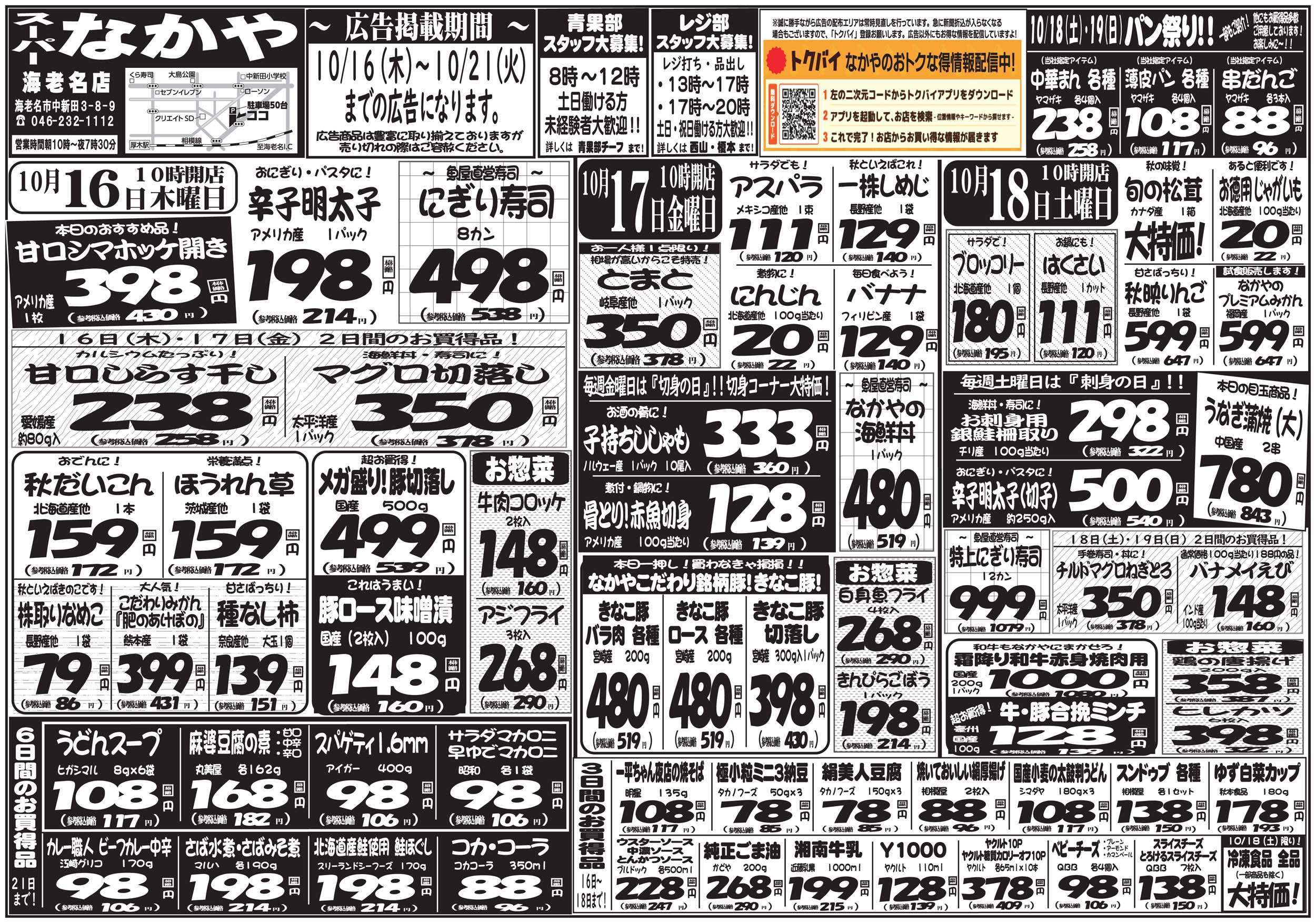 海老名市 スーパーなかや 海老名店 お客様の冷蔵庫がわりにご利用下さい。お買い得商品は折込チラシでチェック! なかやカード会員大募集 ネットチラシ クチコミを見る・投稿する ネットチラシ 広告有効期限:2025.10.16~2025.10.21 その他のネットチラシ 周辺のチラシを見る 周辺情報 グルメ ショッピング 車・バイク 住宅 暮らし 趣味・レジャー 美容・健康 SpirituS(スピリタス) 22.27 km ルートを確認する このお店のTOPページへ 046-232-1112 twitter Facebook Google+