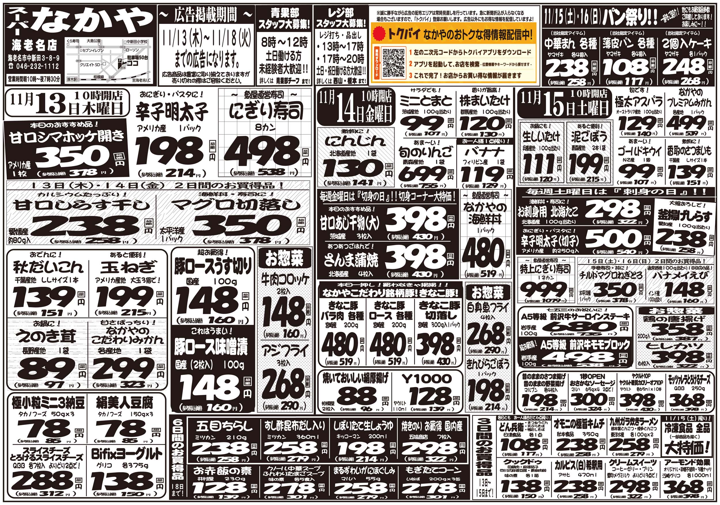 海老名市 スーパーなかや 海老名店 お客様の冷蔵庫がわりにご利用下さい。お買い得商品は折込チラシでチェック! なかやカード会員大募集 ネットチラシ クチコミを見る・投稿する ネットチラシ 広告有効期限:2025.11.13~2025.11.18 その他のネットチラシ 周辺のチラシを見る 周辺情報 グルメ ショッピング 車・バイク 住宅 暮らし 趣味・レジャー 美容・健康 SpirituS(スピリタス) 22.27 km ルートを確認する このお店のTOPページへ 046-232-1112 twitter Facebook Google+