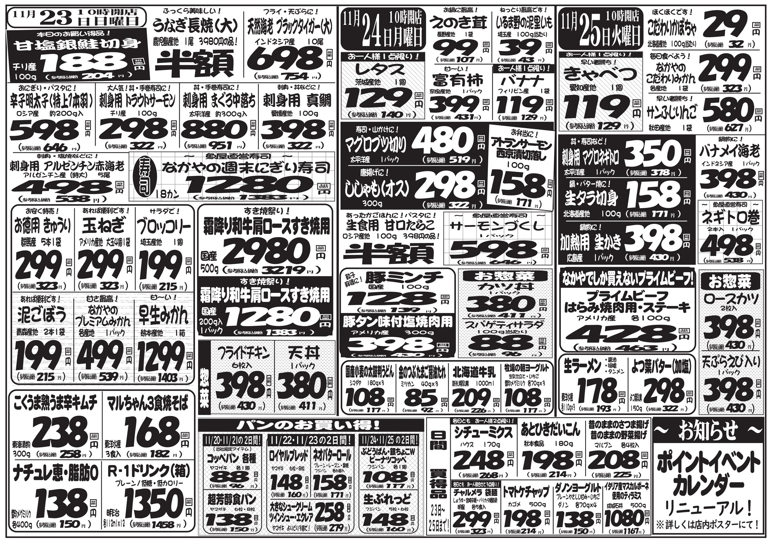海老名市 スーパーなかや 海老名店 お客様の冷蔵庫がわりにご利用下さい。お買い得商品は折込チラシでチェック! なかやカード会員大募集 ネットチラシ クチコミを見る・投稿する ネットチラシ 広告有効期限:2025.11.20~2025.11.25 その他のネットチラシ 周辺のチラシを見る 周辺情報 グルメ ショッピング 車・バイク 住宅 暮らし 趣味・レジャー 美容・健康 SpirituS(スピリタス) 22.27 km ルートを確認する このお店のTOPページへ 046-232-1112 twitter Facebook Google+