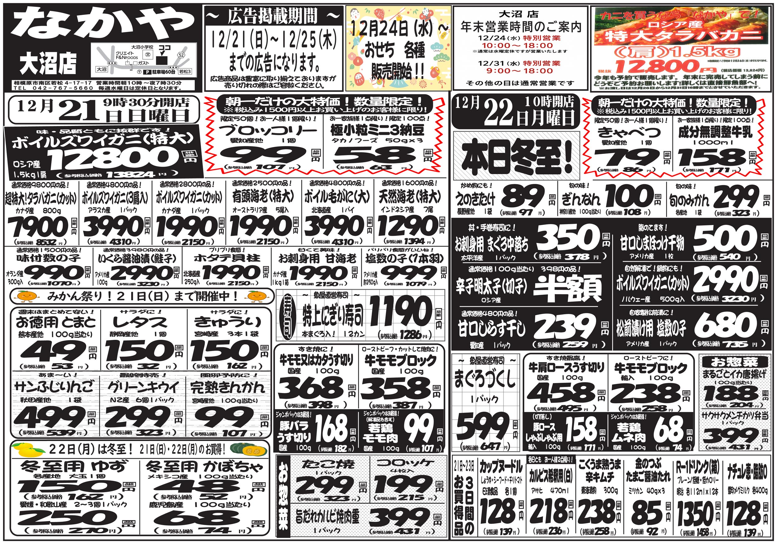 相模原(南区) 新鮮市場 なかや 大沼店 お客様の冷蔵庫がわりにご利用下さい。お買い得商品は折込チラシでチェック! ネットチラシ クチコミを見る・投稿する ネットチラシ 広告有効期限:2025.12.21~2025.12.25 その他のネットチラシ 周辺のチラシを見る 周辺情報 グルメ ショッピング 車・バイク 住宅 暮らし 趣味・レジャー 美容・健康 SpirituS(スピリタス) 29.85 km ルートを確認する このお店のTOPページへ 042-767-5660 twitter Facebook Google+
