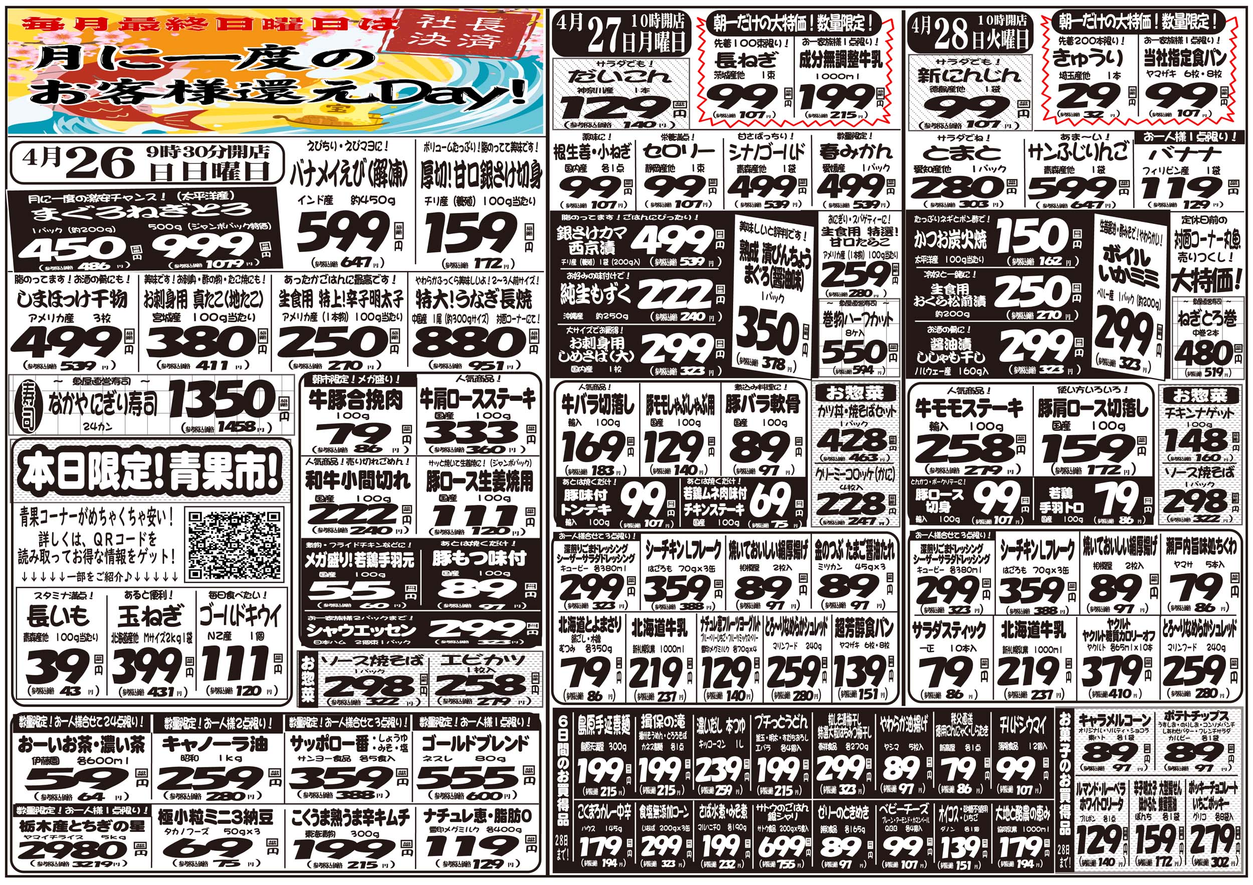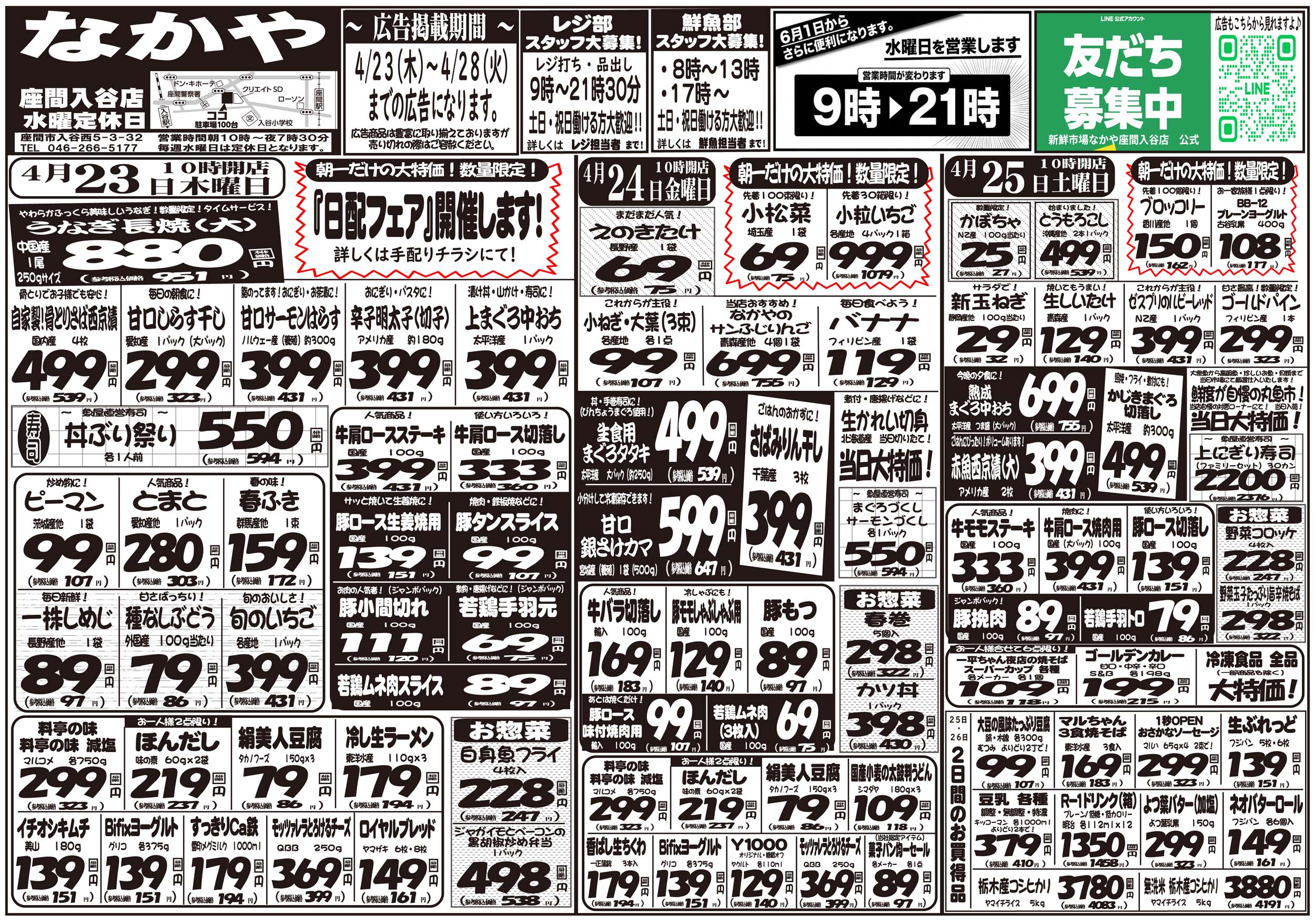 座間市 新鮮市場 なかや 座間入谷店 お客様の冷蔵庫がわりにご利用下さい。お買い得商品は折込チラシでチェック! ネットチラシ クチコミを見る・投稿する ネットチラシ 広告有効期限:2026.04.23~2026.04.28 その他のネットチラシ 周辺のチラシを見る 周辺情報 グルメ ショッピング 車・バイク 住宅 暮らし 趣味・レジャー 美容・健康 SpirituS(スピリタス) 25.06 km ルートを確認する このお店のTOPページへ 046-266-5177 twitter Facebook Google+