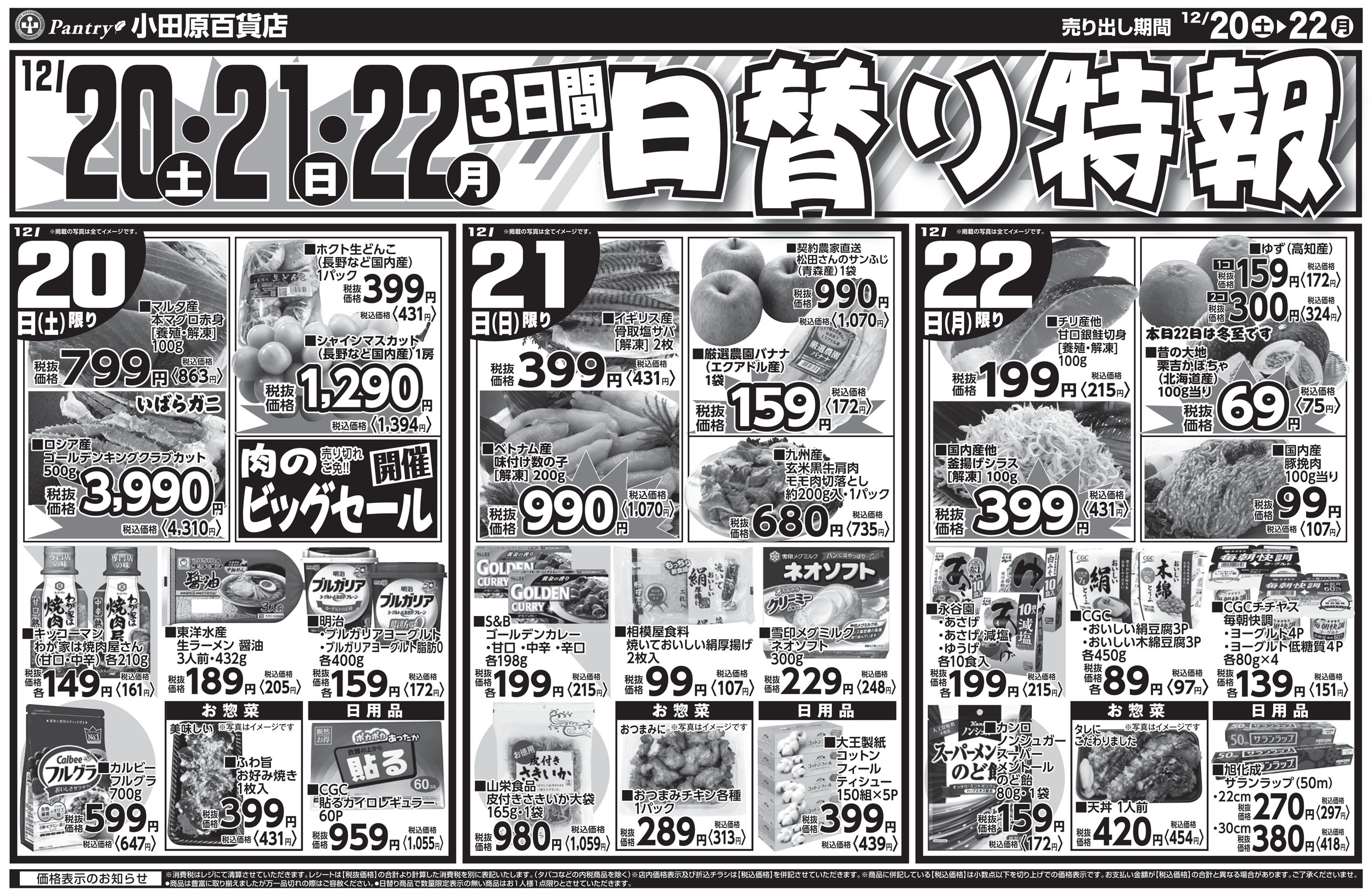 秦野市 小田原百貨店 渋沢店 地元名産の野菜、新鮮な商品を取り揃えております。 ネットチラシ クチコミを見る・投稿する ネットチラシ 広告有効期限:2025.12.20~2025.12.22 その他のネットチラシ 広告有効期限 2025/12/16~2025/12/21 周辺のチラシを見る 周辺情報 グルメ ショッピング 車・バイク 住宅 暮らし 趣味・レジャー 美容・健康 SpirituS(スピリタス) 0.36 km ルートを確認する このお店のTOPページへ 0463-88-1011 twitter Facebook Google+