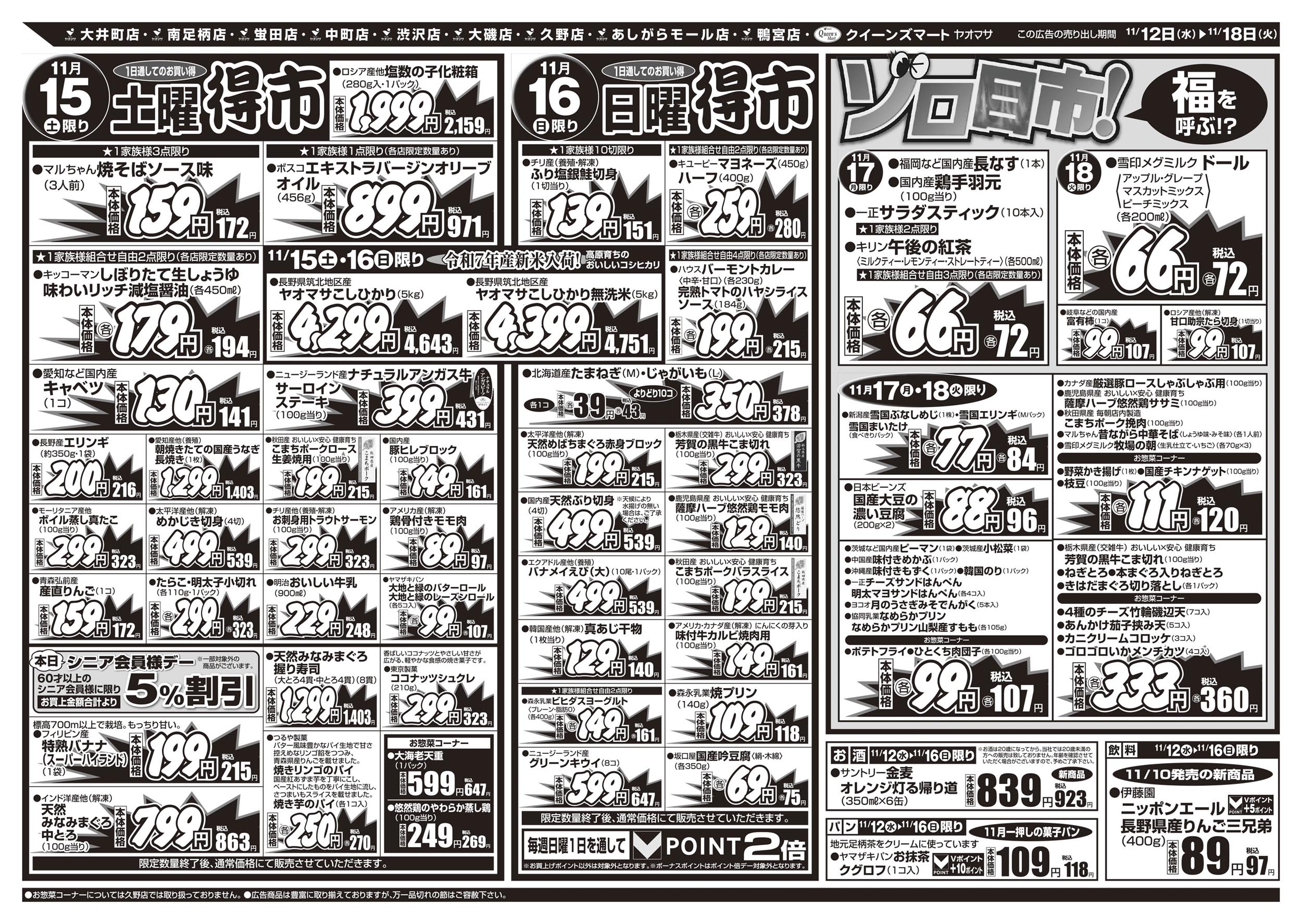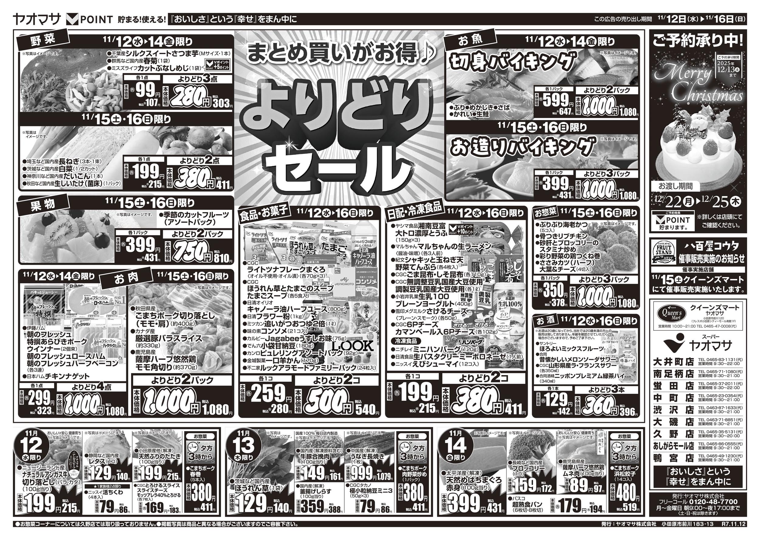 秦野市 ヤオマサ渋沢店 ヤオマサグループは、地域社会に密着し食文化を中心とした豊かな楽しい生活を地域の皆さまに提供します!お得で嬉しいイベントも満載!! ネットチラシ クチコミを見る・投稿する ネットチラシ 広告有効期限:2025.11.12~2025.11.18 その他のネットチラシ 周辺のチラシを見る 周辺情報 グルメ ショッピング 車・バイク 住宅 暮らし 趣味・レジャー 美容・健康 SpirituS(スピリタス) 0.41 km ルートを確認する このお店のTOPページへ 0463-87-1633 twitter Facebook Google+