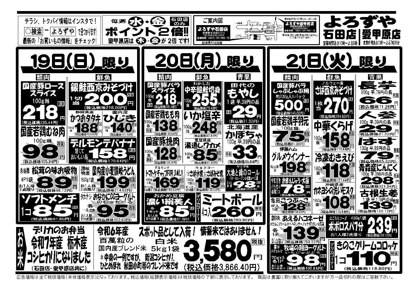 伊勢原市 よろずや 石田店 愛甲石田駅より徒歩3分の地域密着型のスーパー。 ネットチラシ クチコミを見る・投稿する ネットチラシ 広告有効期限:2025.10.18~2025.10.21 その他のネットチラシ 周辺のチラシを見る 周辺情報 グルメ ショッピング 車・バイク 住宅 暮らし 趣味・レジャー 美容・健康 SpirituS(スピリタス) 17.71 km ルートを確認する このお店のTOPページへ 0463-93-3333 twitter Facebook Google+